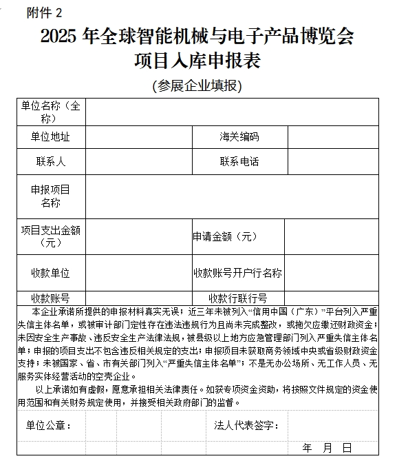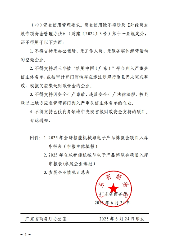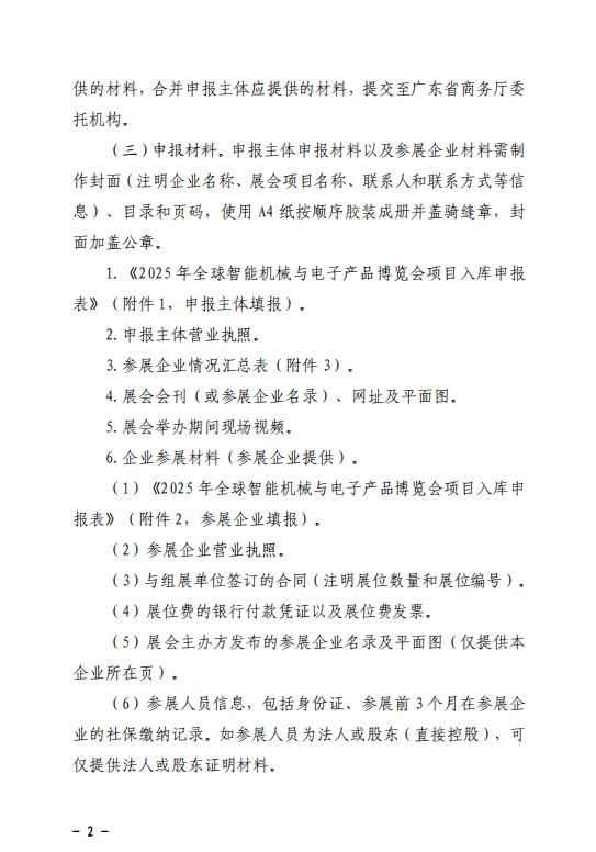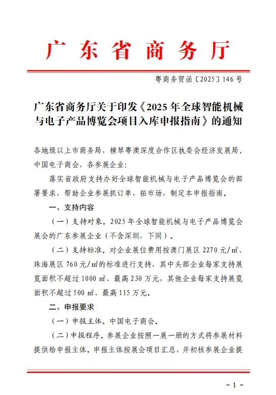 广东省商务厅关于印发《2025年全球智能机械与电子产品博览会项目入库申报指南》的通知